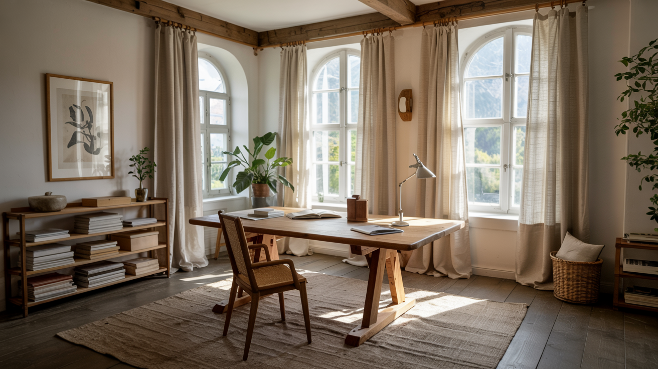 Choose heavier natural fabrics in solid neutrals to block light and add texture. These materials soften hard edges without making the room feel too relaxed.