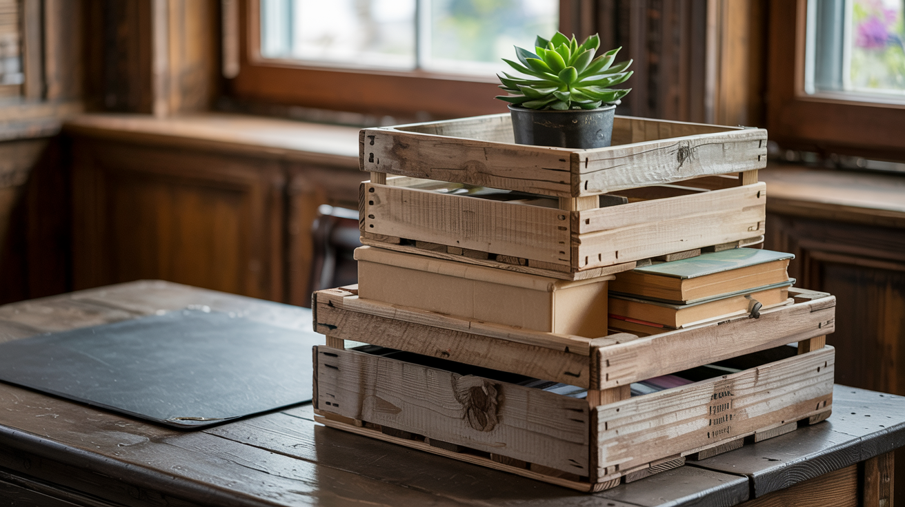 Stack or line crates under shelves or beside desks. Use them to store books, tools, or extra supplies.