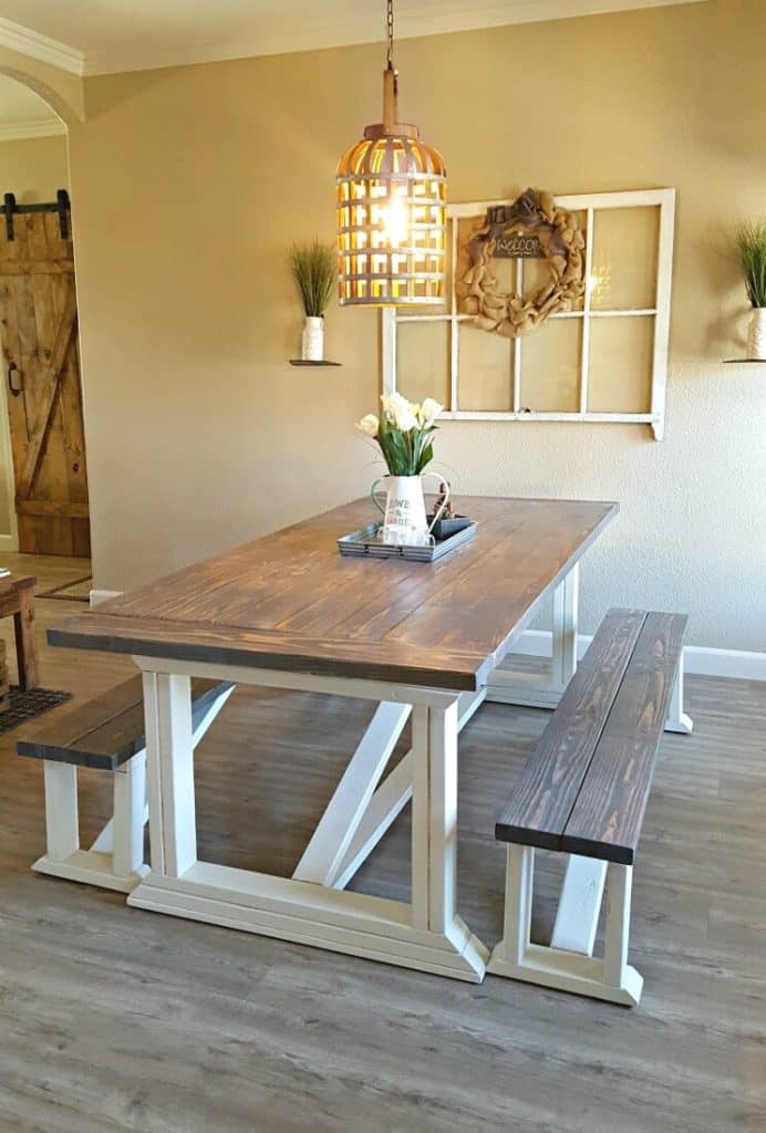 If you dream of having a separate dining space in your farmhouse furniture, it is better to do it in the modern chic style. Balancing the rustic and modern country decor is one popular choice for the dining space as it ensures coziness, comfort, and warmth in the surroundings.