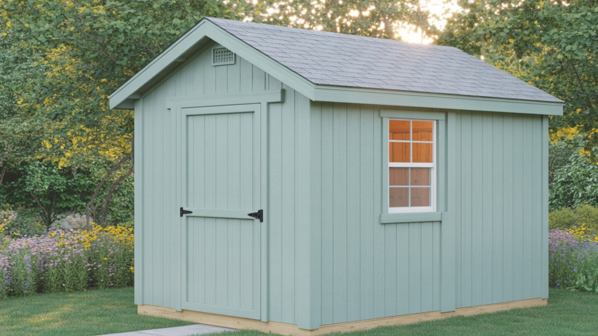 You get good overhead space inside, making it easy to store taller tools or even hang shelves. The shape also makes it simple to match your home’s roofline.