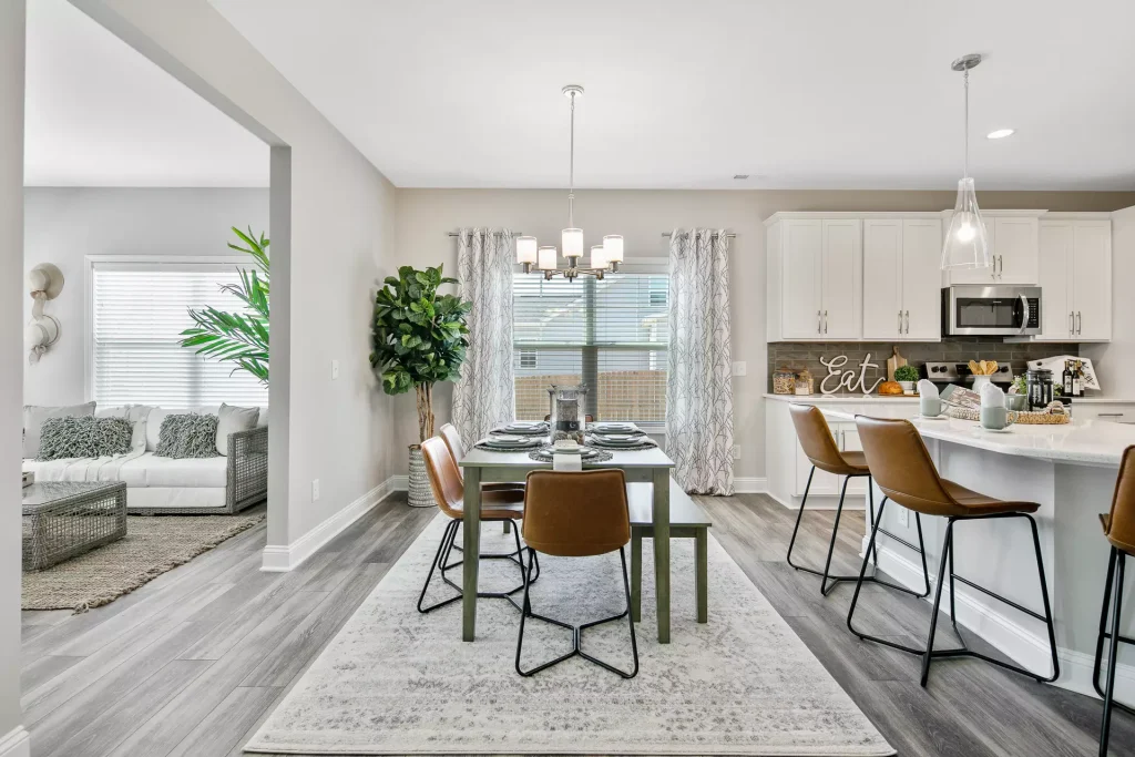Agreeable Gray coordinates with the furniture and kitchen settings giving a subtle overall look. Cooking needs warmth and not something too bright, which is exactly what grays are for.