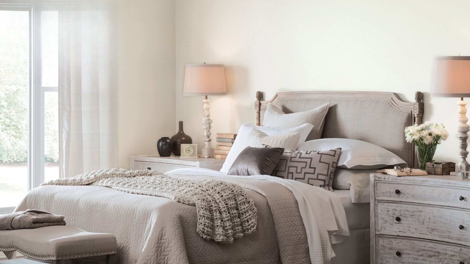 Pick gentle neutrals with subtle warmth like Creamy or Alabaster. These shades help create a soft and restful atmosphere in bedrooms.