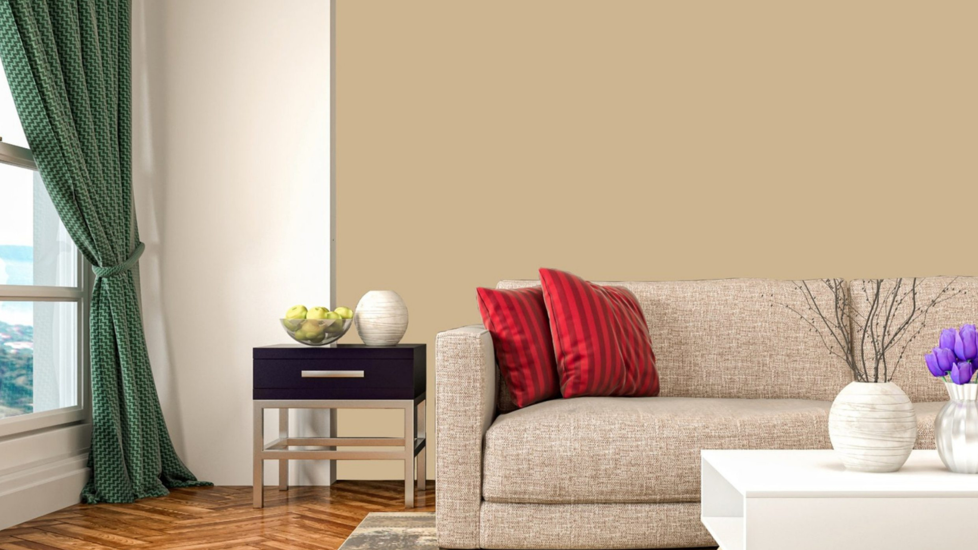 The undertone leans yellow but not bright, making it suitable for family rooms or traditional interiors. It looks excellent with terracotta, deep red, or muted navy accents.