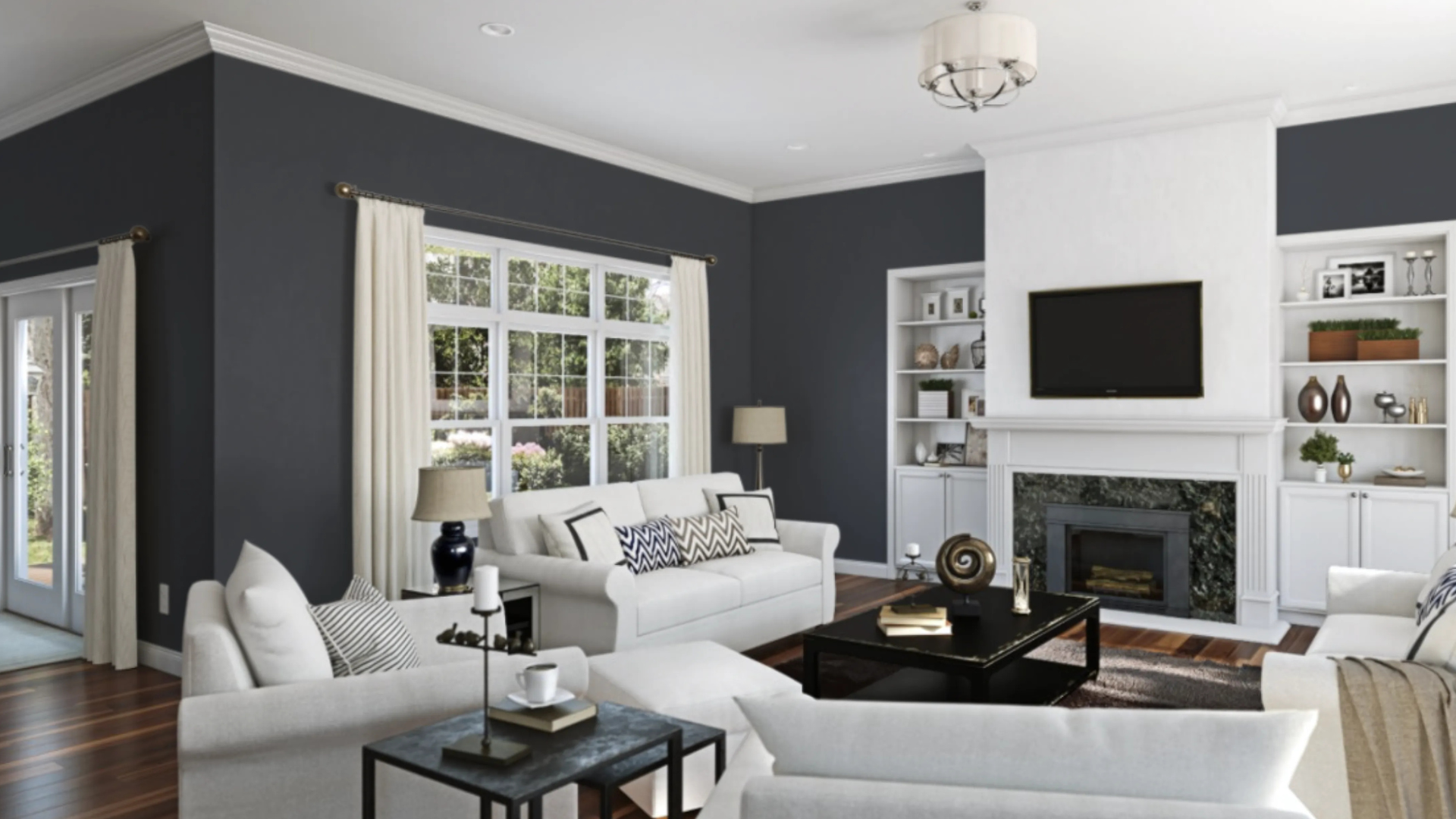 Use Cyberspace in living rooms to create a grounded, dramatic look. It works well behind shelving, fireplaces, or as a backdrop for art.