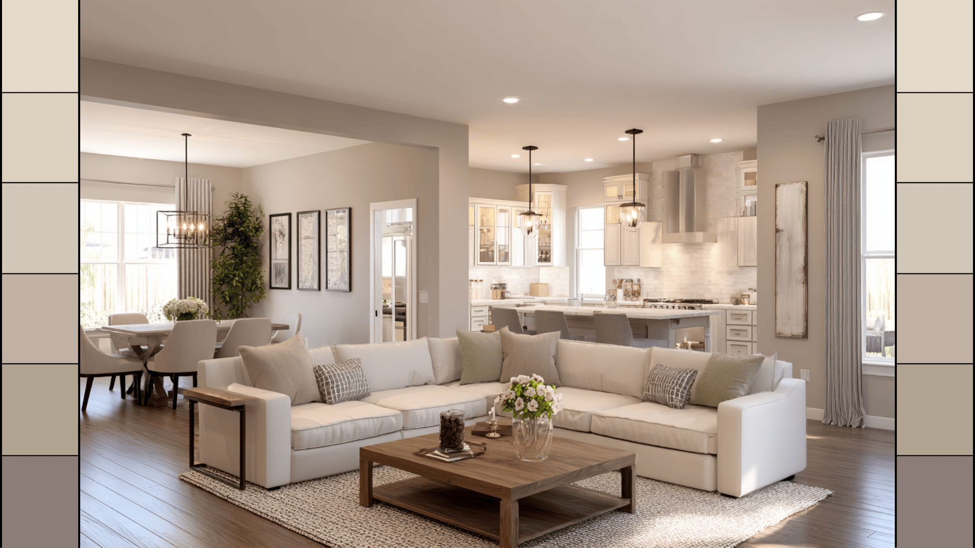 - Repose Gray (SW 7015, HEX #CCC9C0): This soft, warm gray gently bridges the gap between deep blue and neutral tones. It’s subtle enough to transition smoothly from wall to furniture.