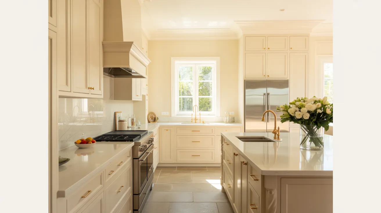 On cabinets, Greek Villa looks clean without feeling cold. It works great with brushed brass hardware, light stone counters, and white walls. In kitchens with lots of daylight, it glows without going yellow.