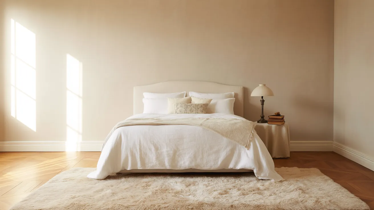 In bedrooms, Pearly White creates a calm, soft backdrop. It works well behind upholstered headboards or layered bedding, and it helps the room feel cozy without feeling enclosed.