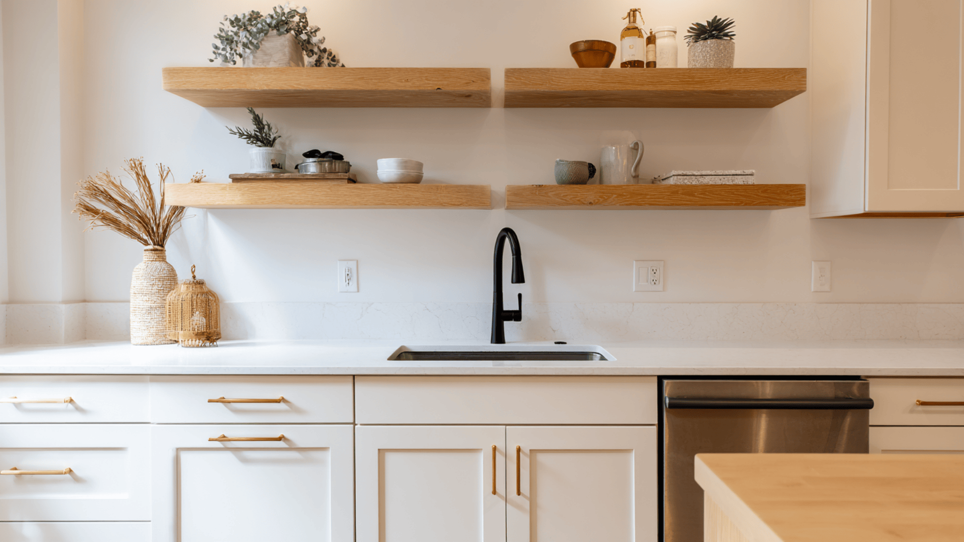 For hardware, brushed brass adds a classic softness. Chrome or polished nickel keeps things clean and fresh. Matte black provides contrast and a more modern edge.