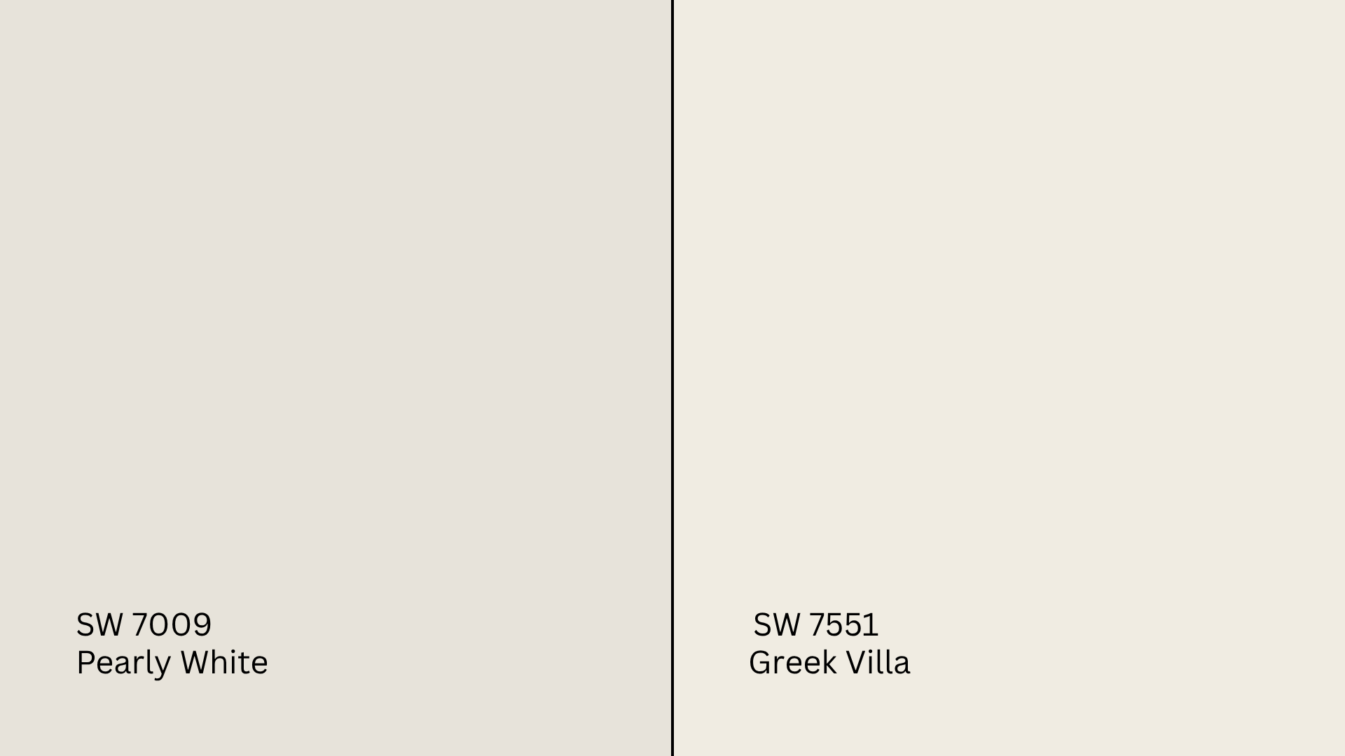 Greek Villa (SW 7551, #F8F5EC) is lighter, with a touch more yellow warmth.