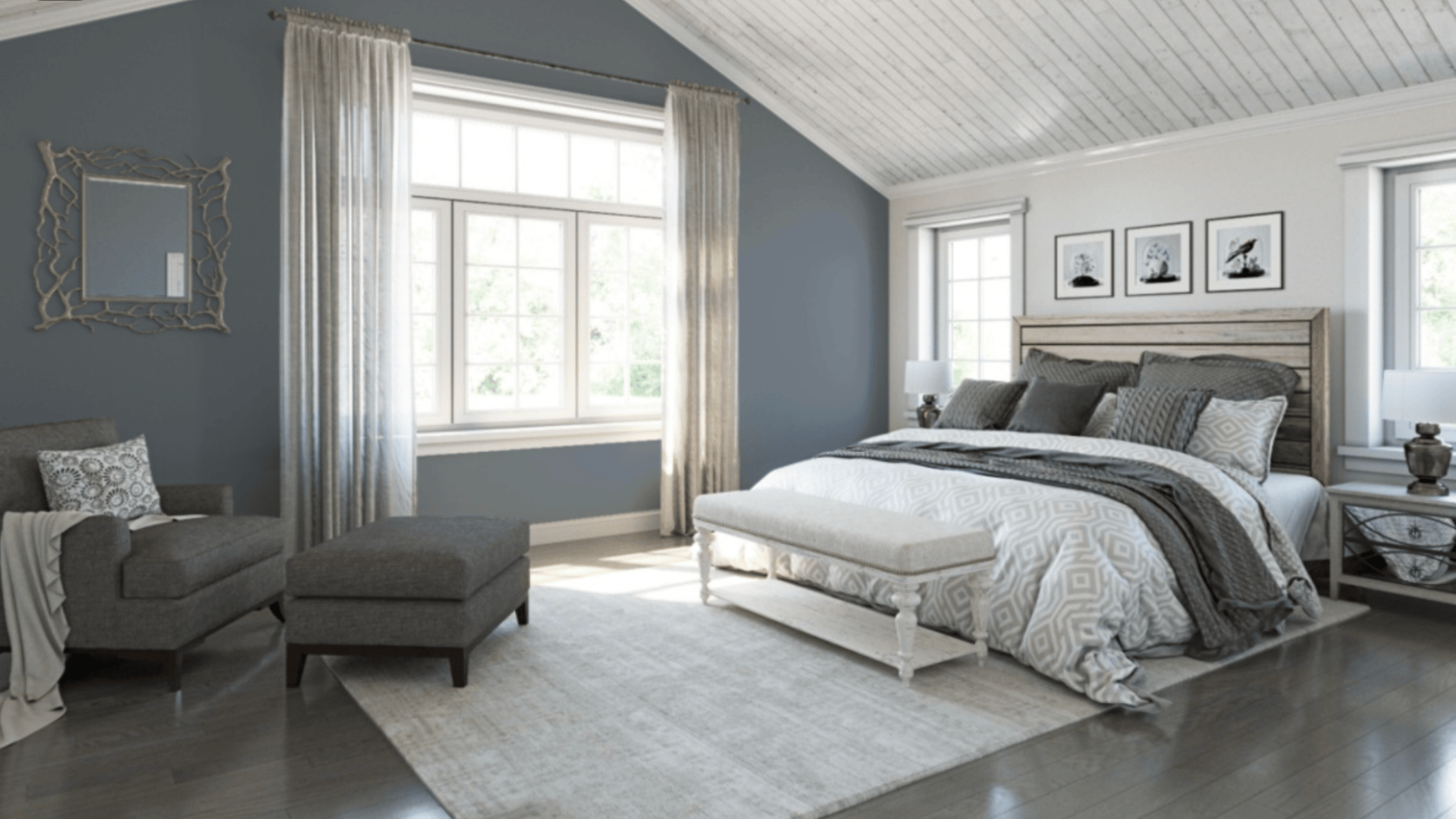 If you want a cozy, moody bedroom, Storm Cloud delivers. It pairs beautifully with layered bedding, soft lighting, and wood or gold accents. Just be mindful of small rooms; it can shrink the space visually if you’re not careful.