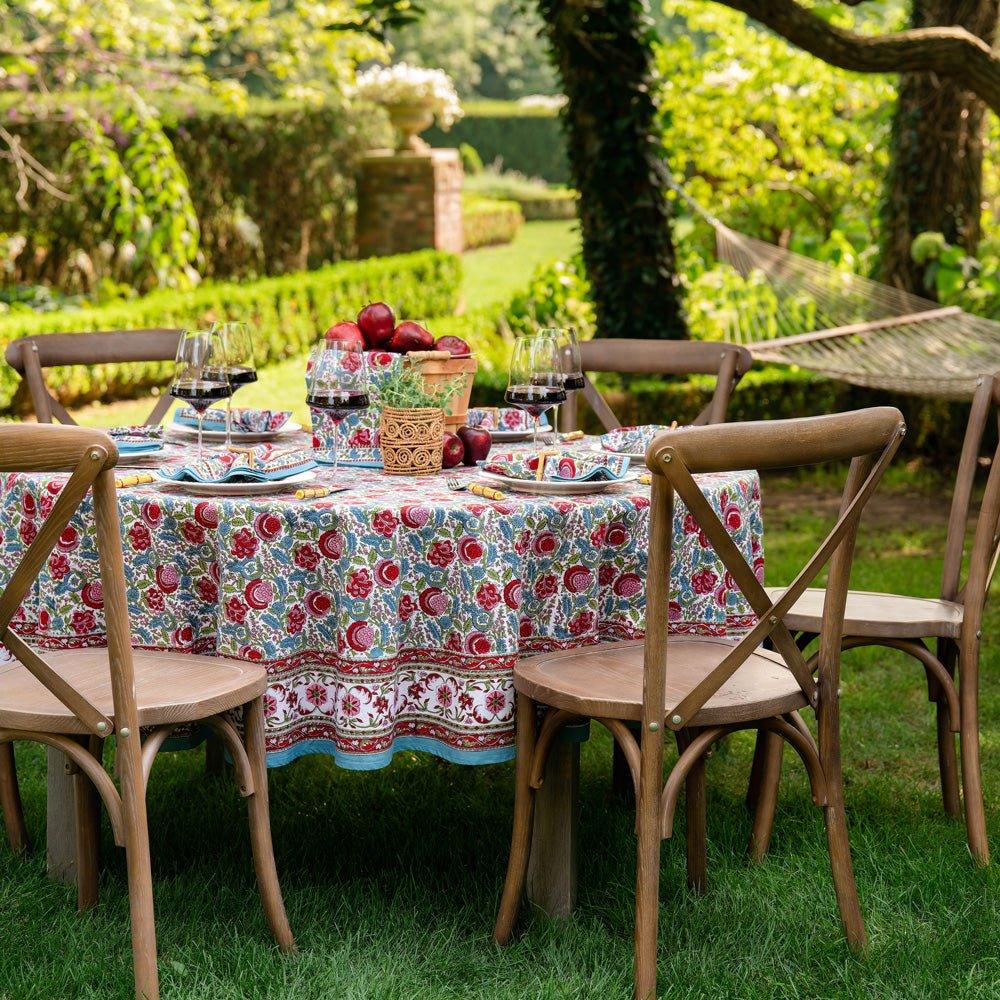 Opt for slightly shorter drops (about 6-8 inches) to prevent wind from turning your tablecloth into a sail.