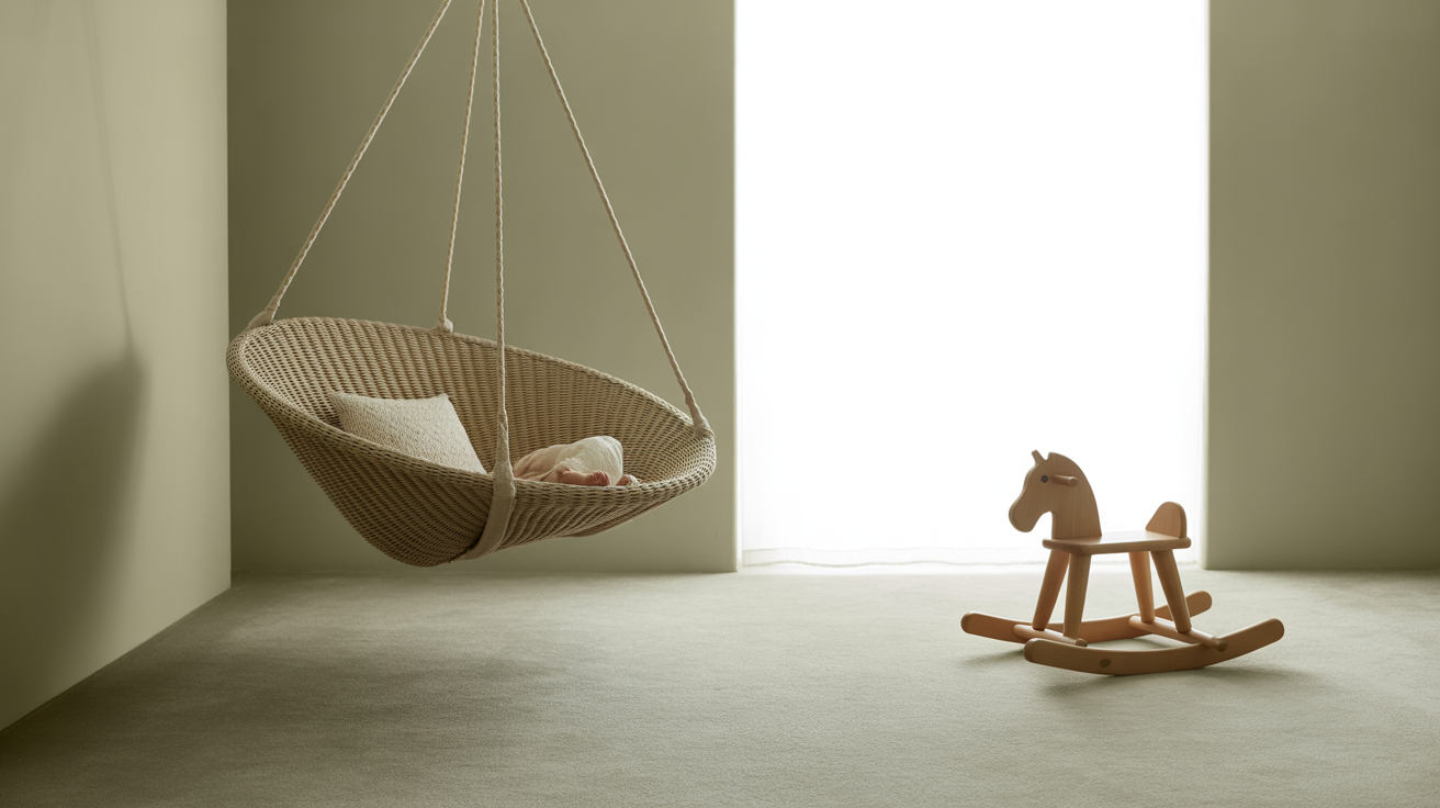A ceiling-mounted swing or hammock chair offers movement-based play that takes up minimal floor space. This feature satisfies physical energy needs without requiring a large footprint.