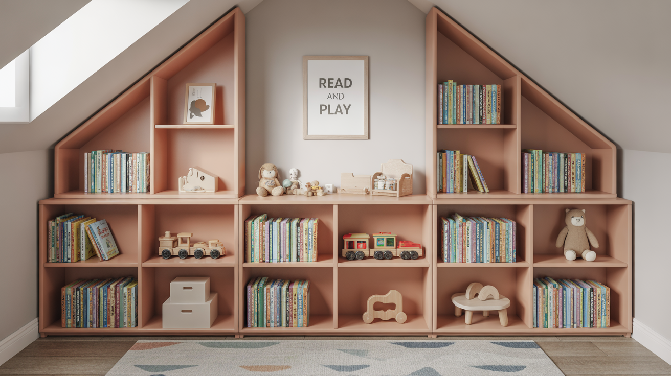 Triangle-shaped desks or custom corner cabinets maximize every inch of available space. Adding corner book displays or toy storage keeps items accessible while maintaining open play areas.