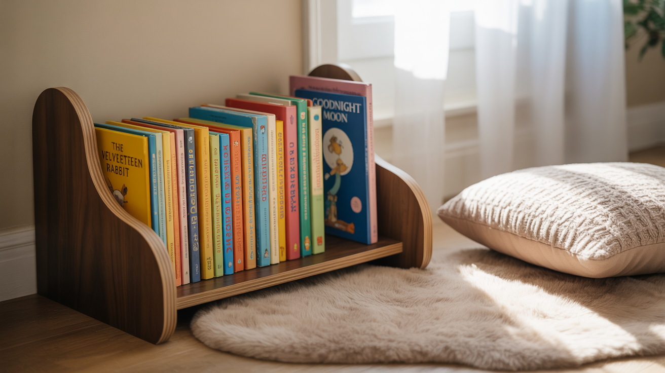 Install multiple rails at different heights to create a library wall that grows with your child. This display method naturally encourages regular reading as covers work as colorful, inviting art.