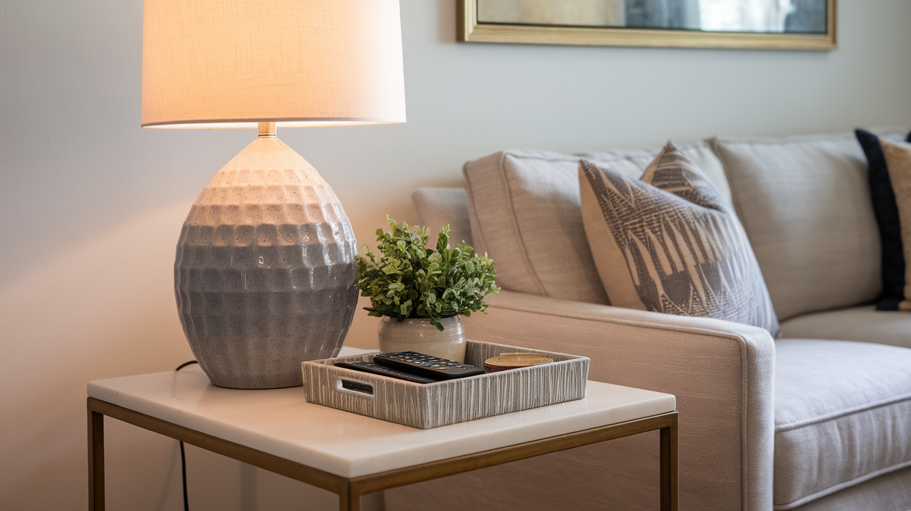 A few key pieces can make any side table look put together. Table lamps provide both function and style, serving as anchor pieces for your arrangement.