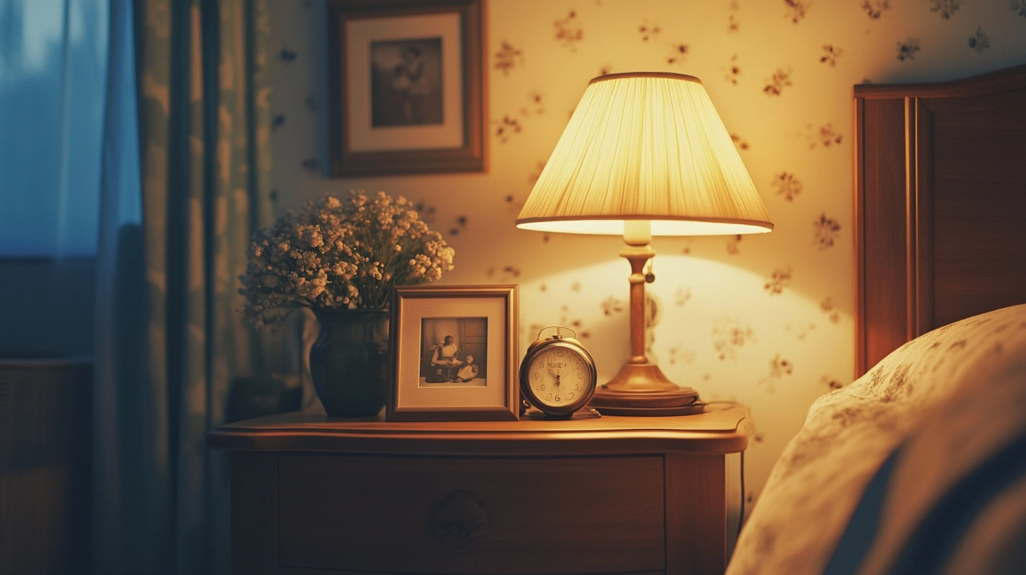 Add one or two meaningful items, such as a special photo or a small memento, that brings you joy. A small clock with a non-glaring display helps you keep track of time without disrupting sleep.