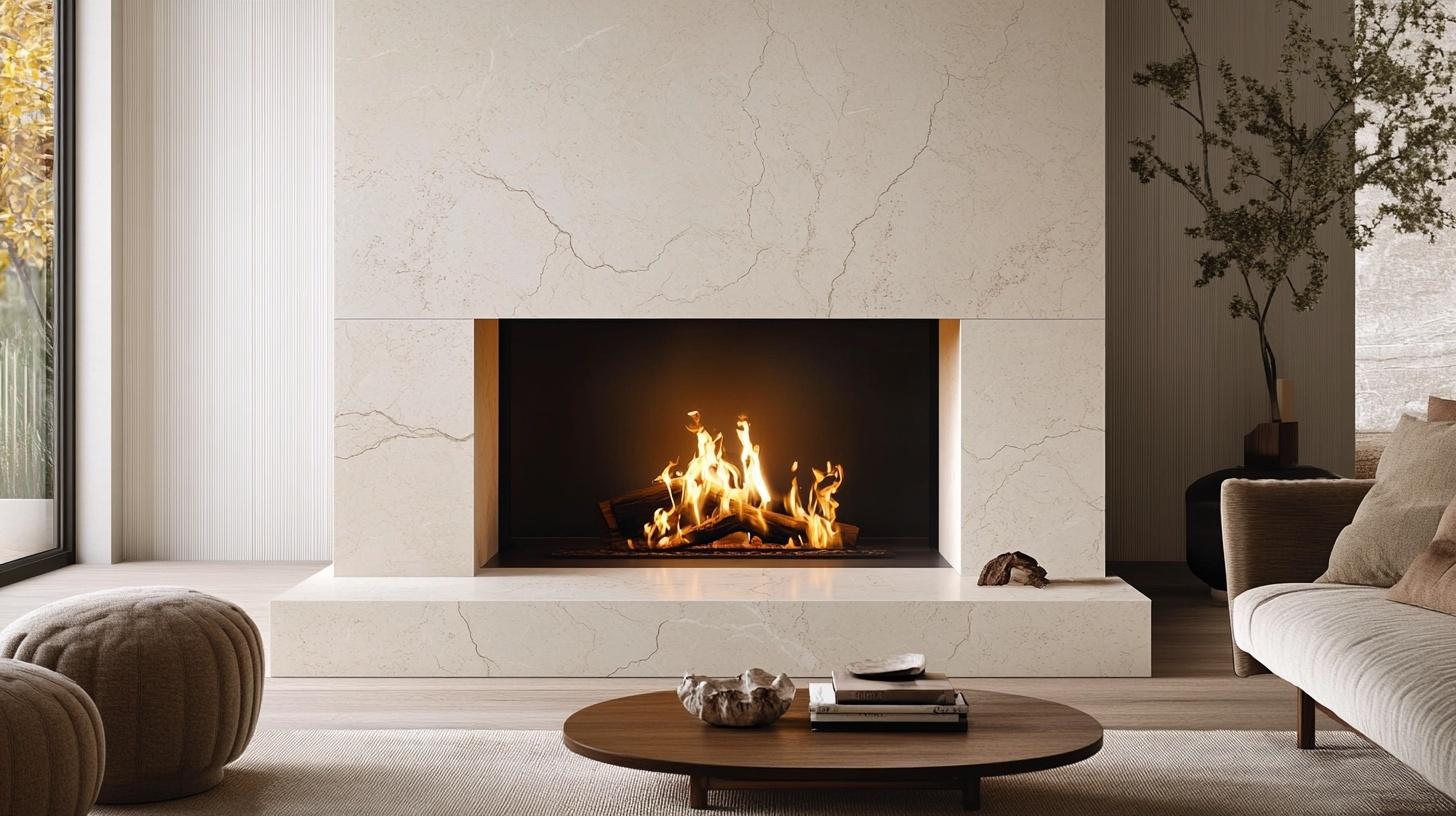 Change your fireplace into a striking focal point with Soprano Quartz cladding. The material handles temperature changes well, making it suitable for fireplace surrounds in living rooms and family spaces.