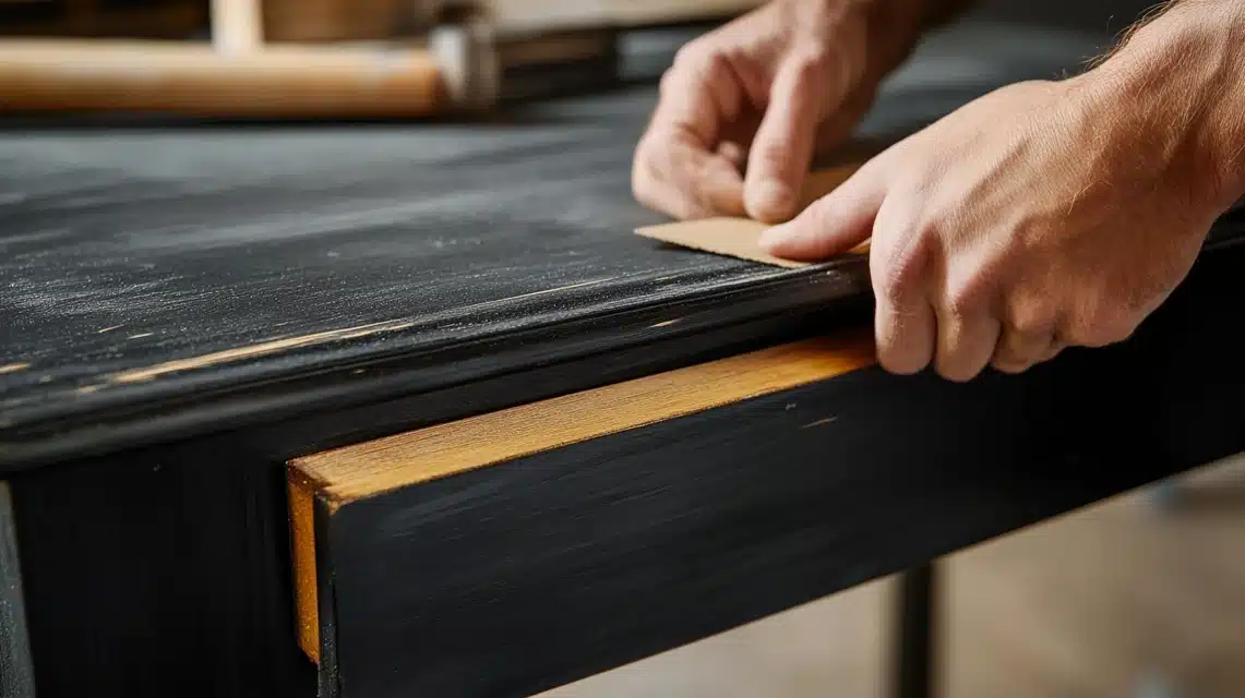 Dry brushing adds subtle texture and depth using minimal paint and light strokes. This method is perfect for enhancing the character of black furniture.