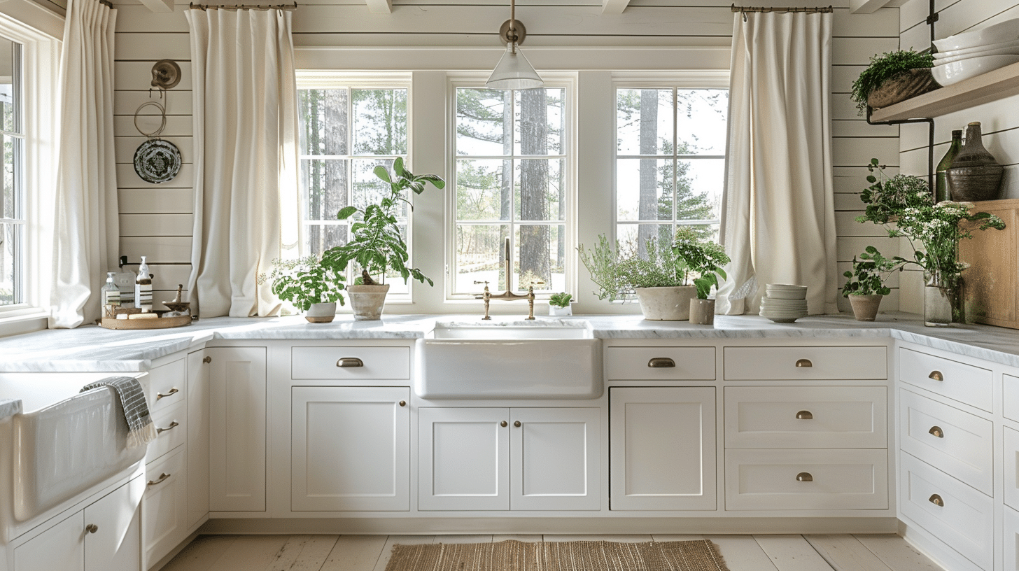 Perfect for modern or farmhouse kitchens, all-white curtains add a touch of elegance while maintaining a clean and uncluttered look.