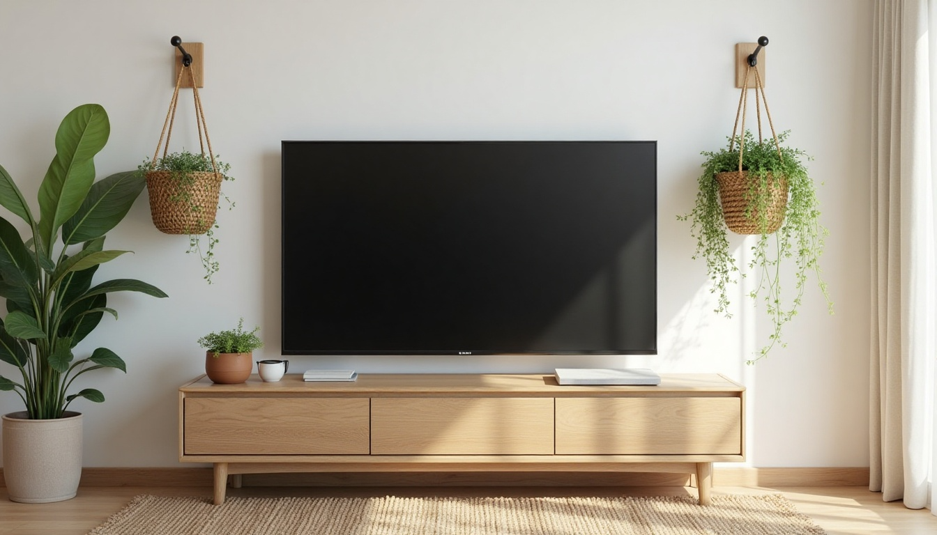 These ideas use plants and natural materials to create a warmer, more lived-in look around your TV, making the entire area feel more welcoming and less focused on the screen itself.