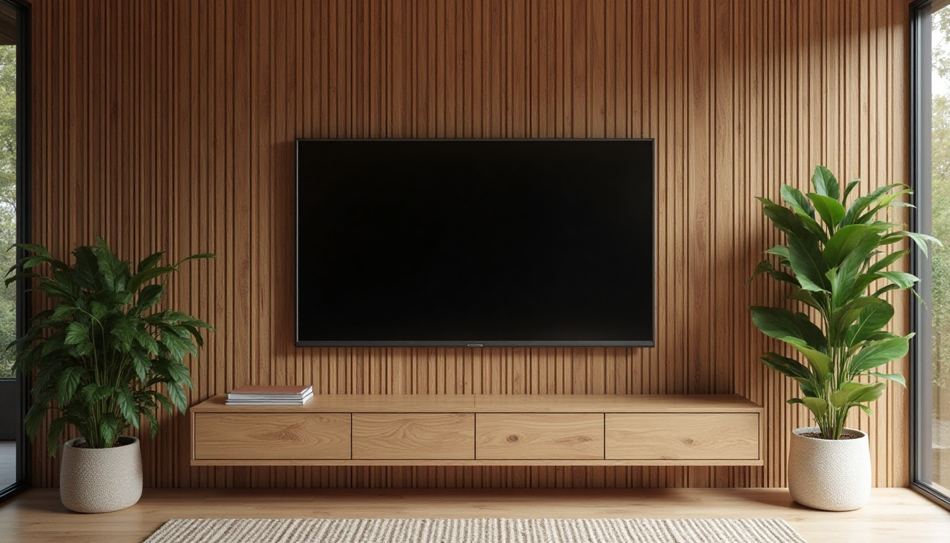 This look works well in many styles, from modern to rustic homes. The textured background makes your TV area feel like a carefully designed part of your home.