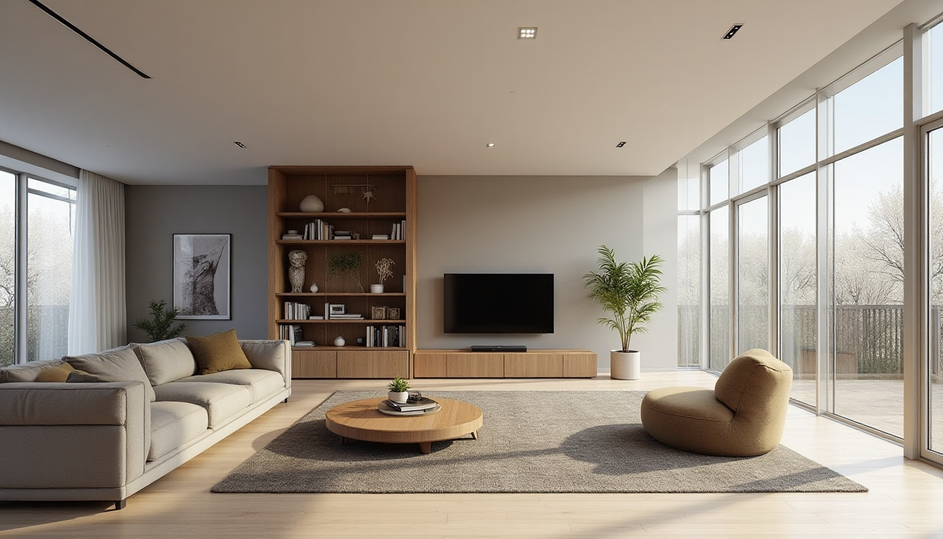 Balance is key in your main living space. Place seating at a comfortable viewing distance, about 8-10 feet from a standard-sized TV. Consider setting up your furniture in a U-shape facing the TV wall.
