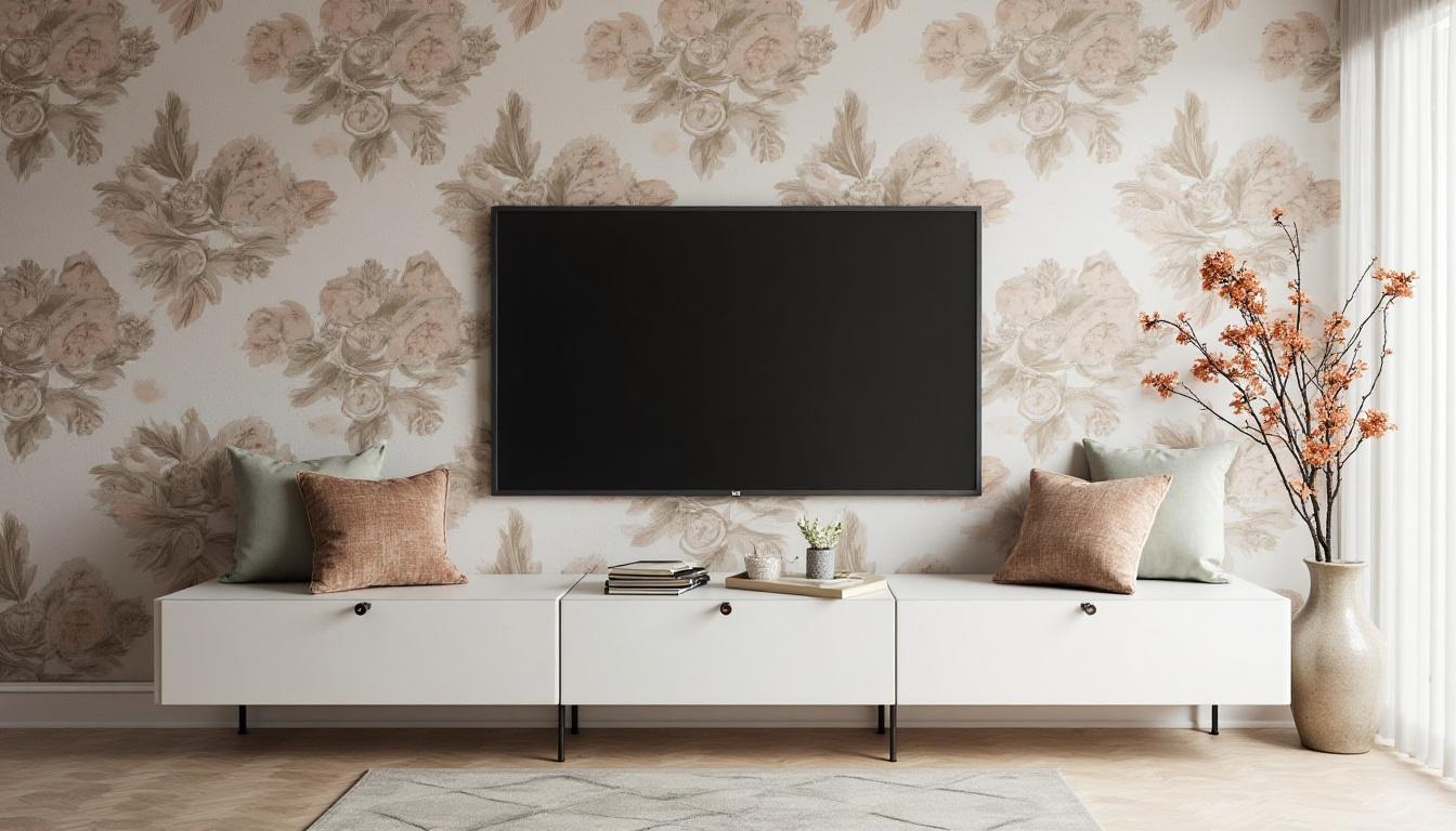 Placing eye-catching wallpaper on the wall where your TV hangs draws attention to the entire wall rather than just the screen. Choose patterns that work with your room’s colors, but avoid very busy designs that might distract while watching.