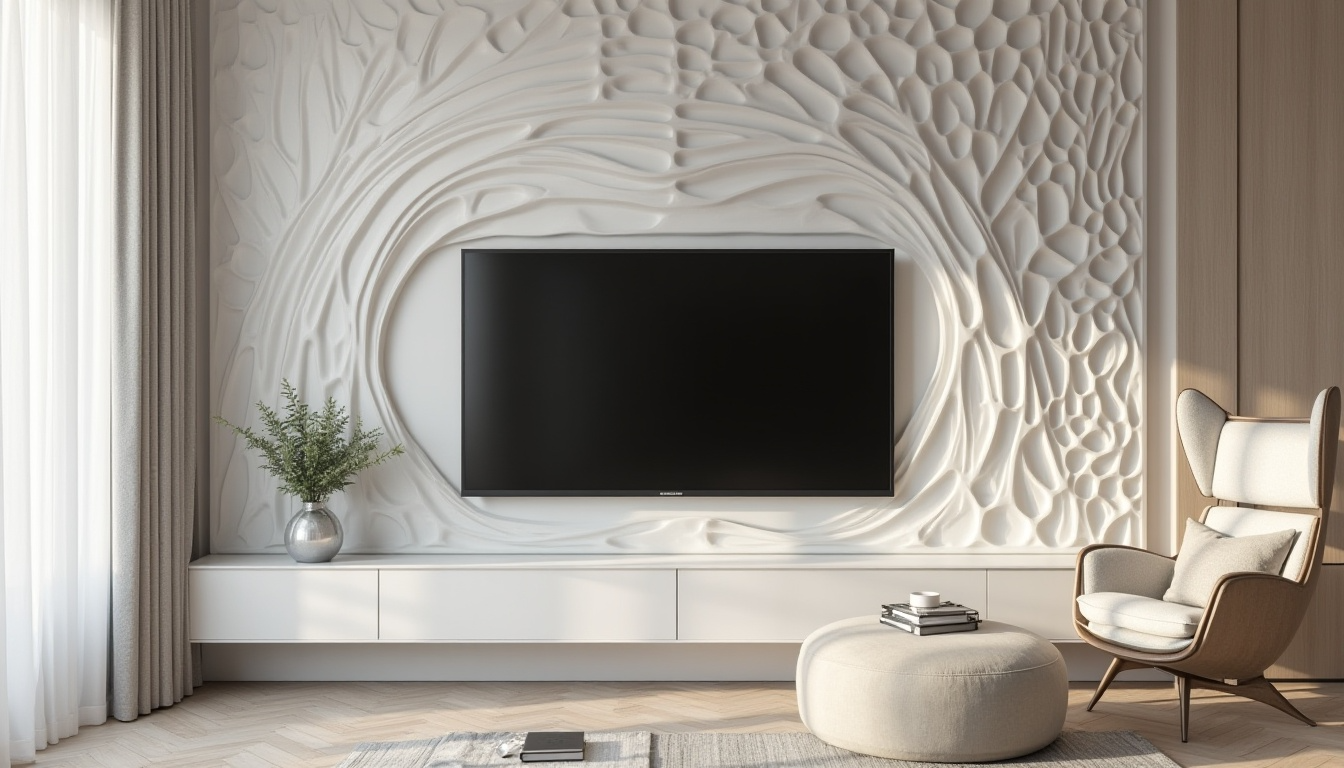 Adding three-dimensional wall panels around your TV brings texture and movement to your wall. These panels come in many patterns, from waves to geometric shapes.