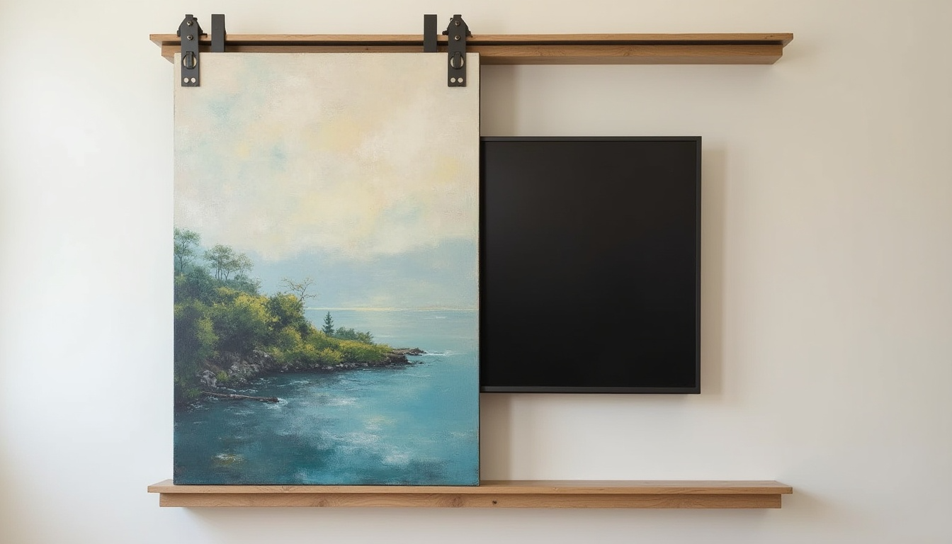 17. Use a Sliding Art Panel to Hide the TV