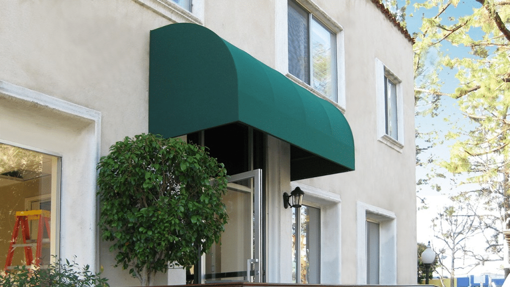 Dome awnings feature a rounded shape, creating an elegant and inviting look. They are often used above windows or doorways, adding a touch of sophistication to office buildings and storefronts.