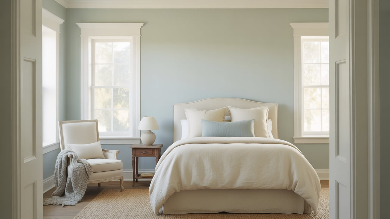 - Light blues or cool lavenders: You can also try muted tones like SW 6827 Elation or similar pale blues to create contrast that still feels calm.