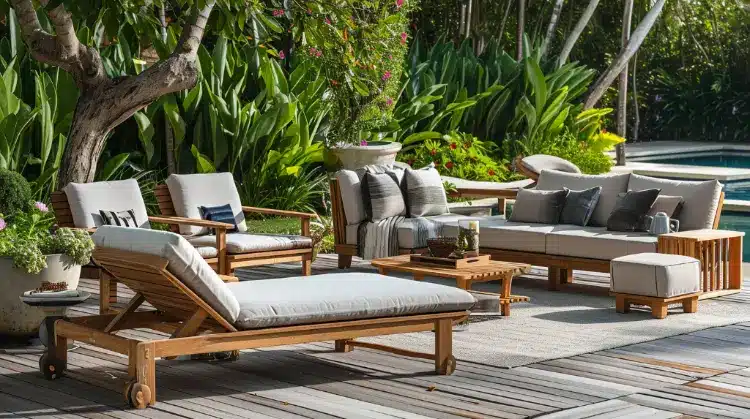 Teak patio furniture is much liked by many homeowners and designers because it stays good for a long time, has a timeless look, and does not need too much care. This kind of wood comes from Southeast Asia, where the warm weather makes teak very strong and lasting.