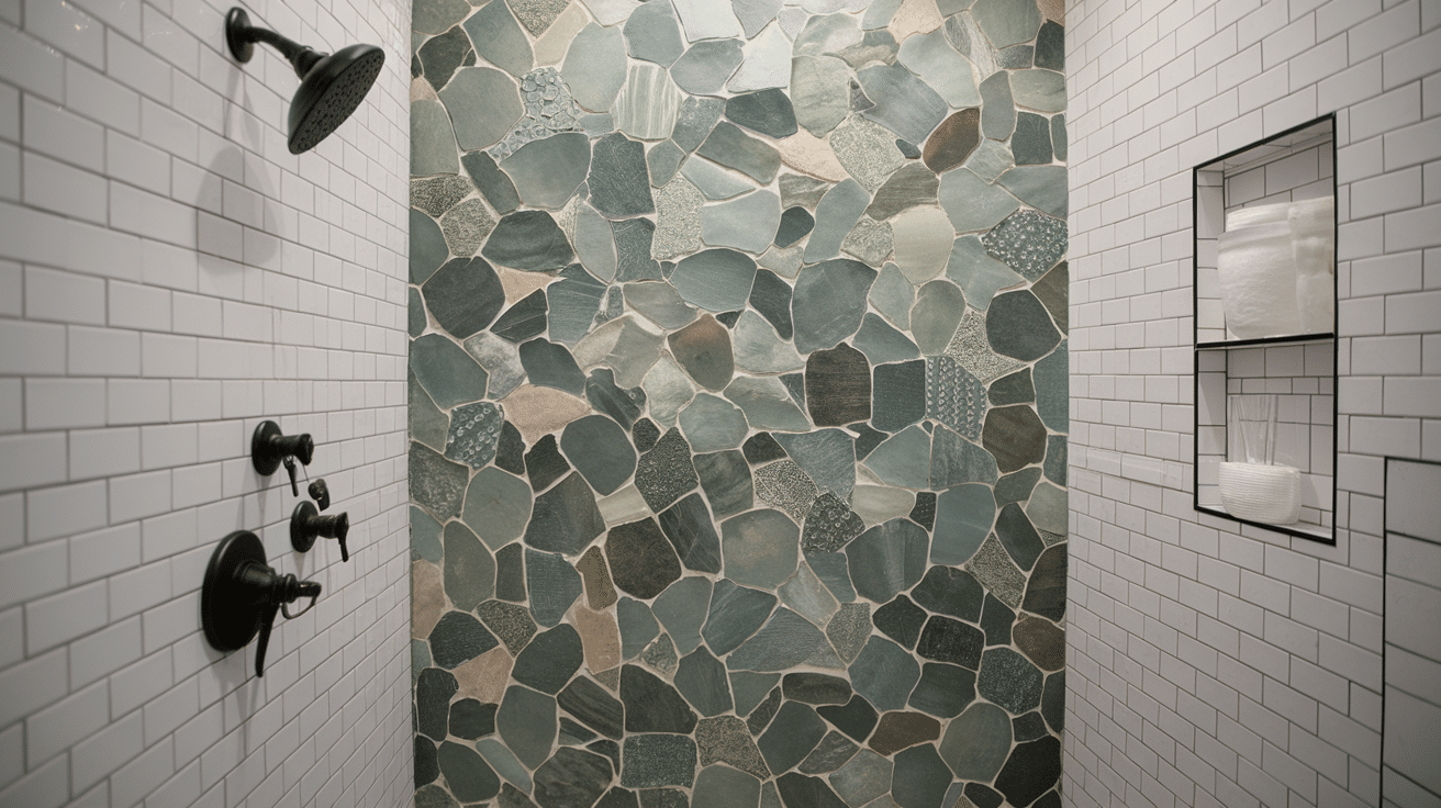 Mixed sizes can help break up large shower walls or draw attention to certain areas. This method works best when the tiles share similar colors or materials to maintain a sense of unity.