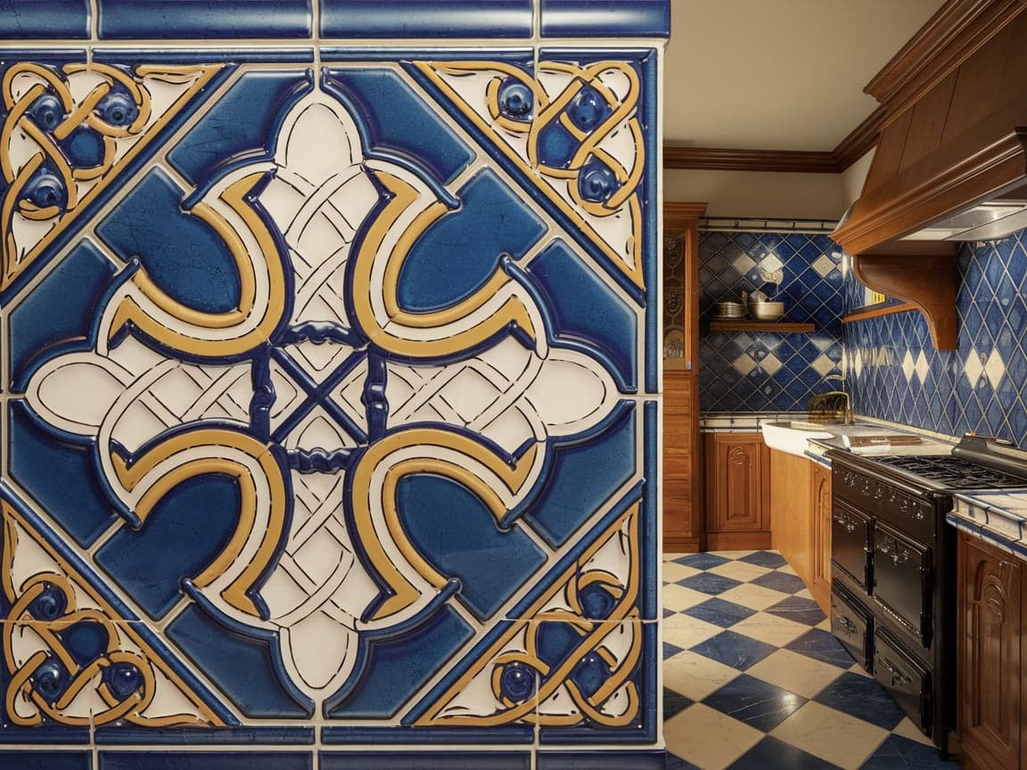 Install Celtic cross-patterned tiles on walls or as a backsplash to add intricate detail to your Victorian kitchen.