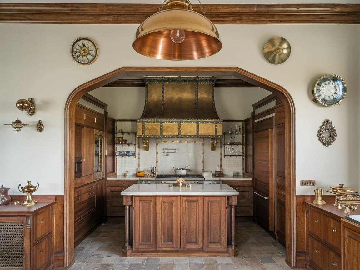 Install an ornate or wood-paneled range hood as a statement piece above your stove. This functional element can become a beautiful focal point in your Victorian kitchen design.