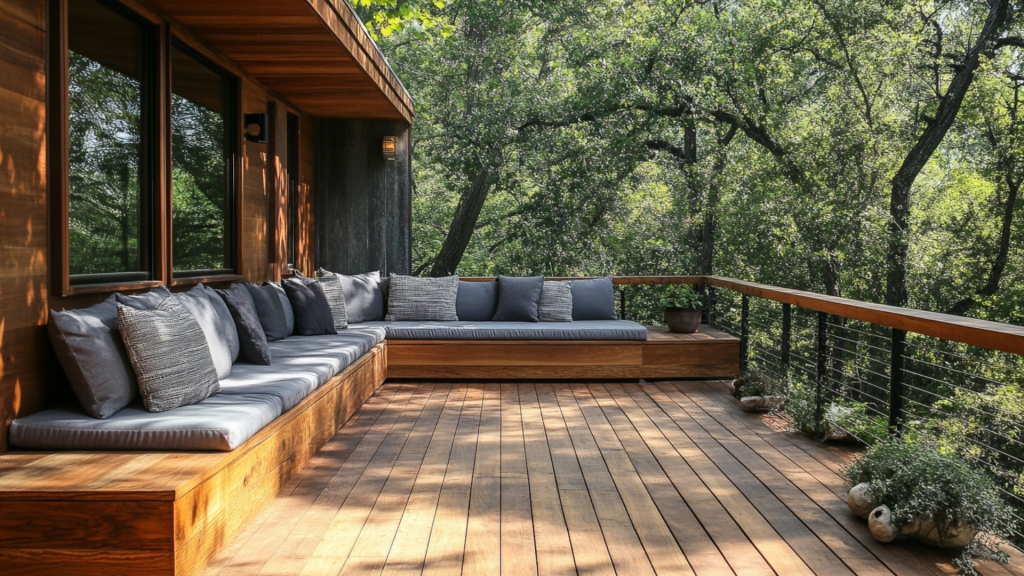 Built-in benches are an excellent way to maximize seating without taking up extra space. These can be incorporated into the deck’s structure, along the railing, or in corners.