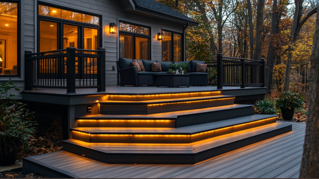 Built-in lighting is a functional yet stylish choice for your deck. Install lights along the steps or railings for added safety and ambiance.