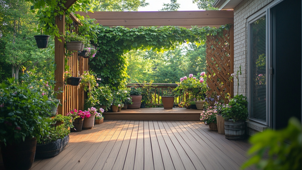 Climbing plants such as ivy or roses can enhance the natural look of your deck while providing privacy. Use trellises or plant them along railings to create a lush, green backdrop.