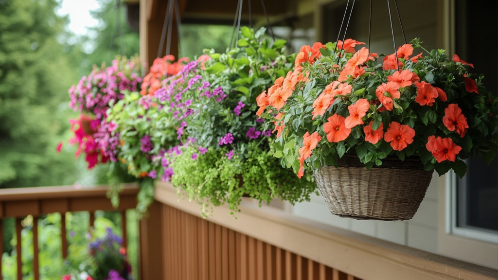 Hanging baskets are a great way to add greenery to your deck without taking up any floor space. Fill them with vibrant flowers, fragrant herbs, or trailing vines to create a beautiful, colorful display.