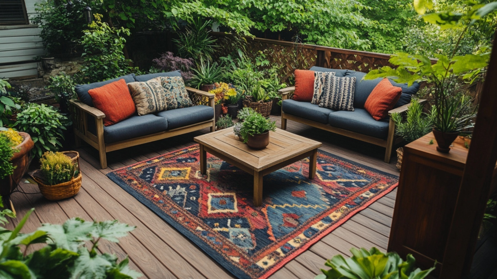 An outdoor rug can add color, texture, and warmth to your small deck without breaking the bank.