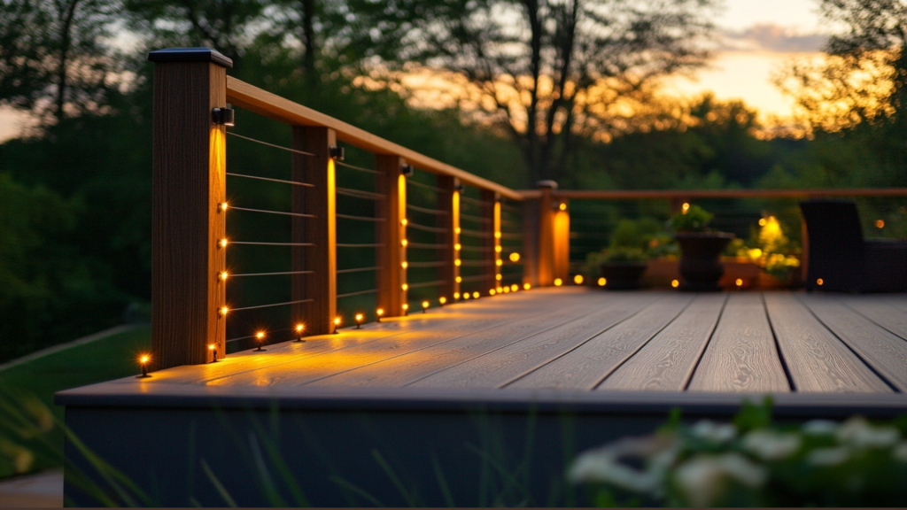 Solar-powered lights are an eco-friendly option for illuminating your deck. Placing them along the deck’s perimeter or railings will add soft, ambient lighting without requiring electrical wiring.