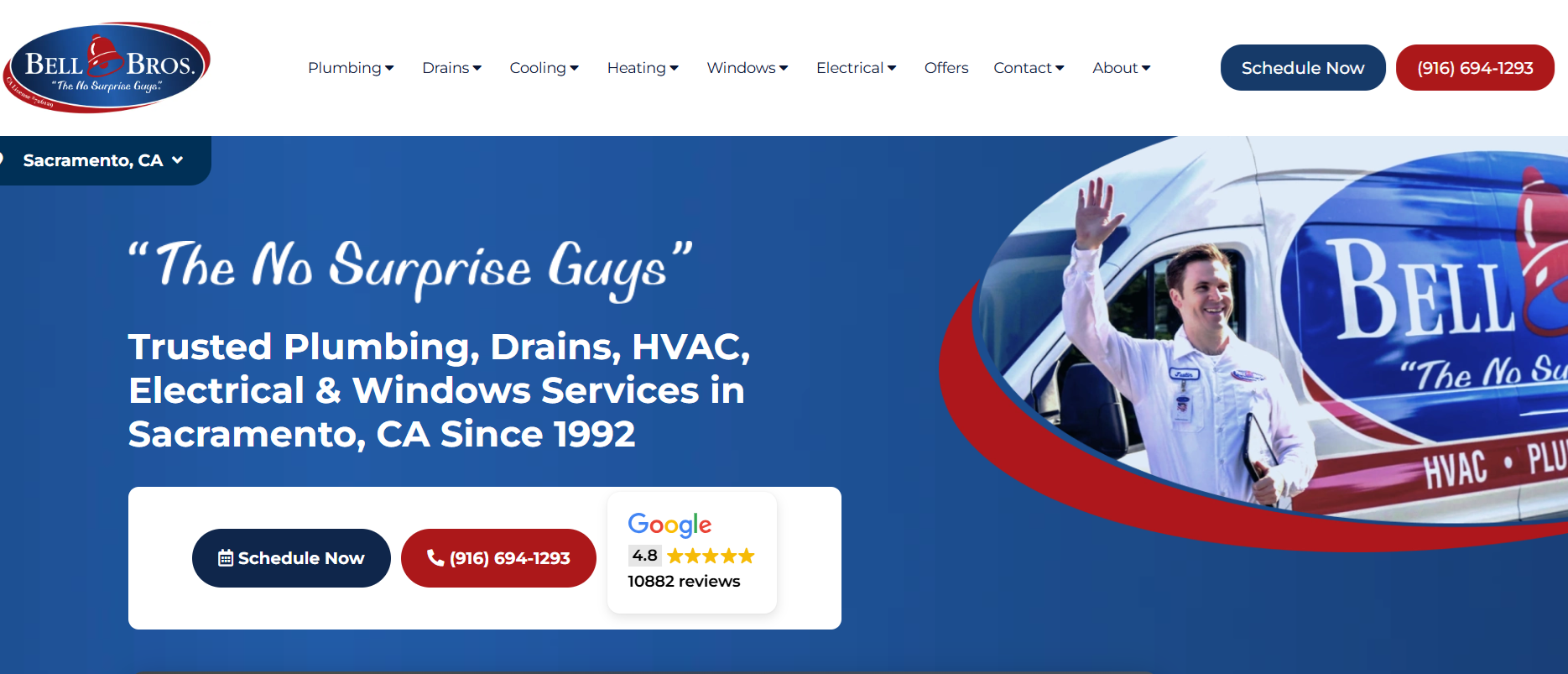Bell Brothers is one of the big names you’ll hear about when searching for the best heating and cooling companies in Sacramento. They’ve been around for decades and have a pretty big team.