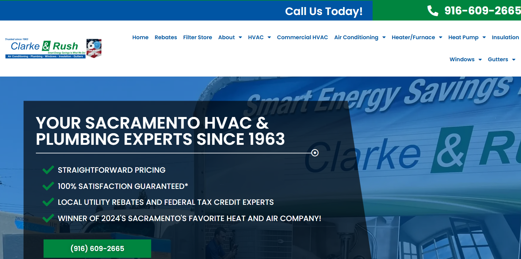 Clarke & Rush has been serving the region for a long time and often comes up when people ask about the best HVAC companies in Carmichael. They’re known for steady, dependable service.