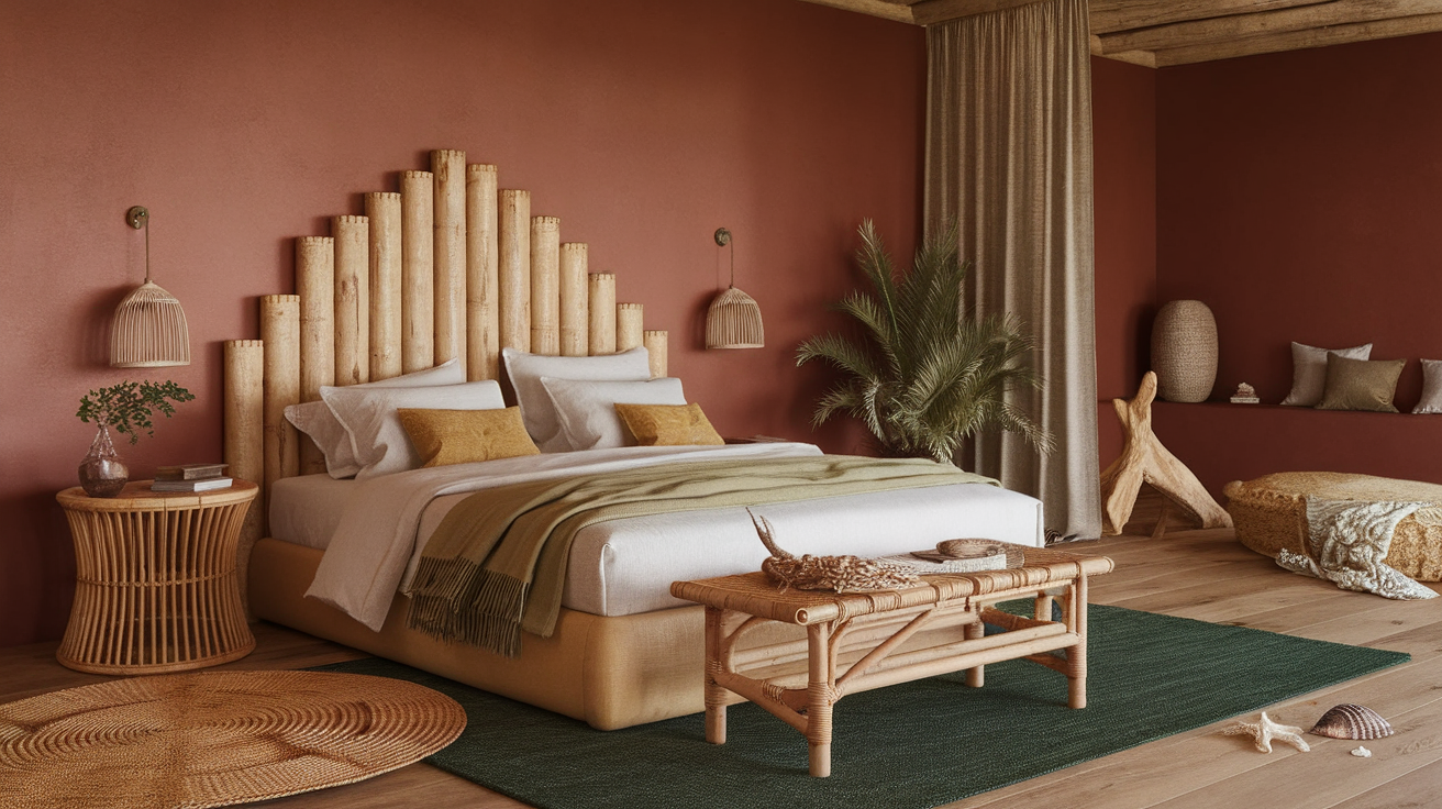 Incorporate earthy tones like terracotta, olive, and stone into your coastal bedroom for a grounded, natural vibe.