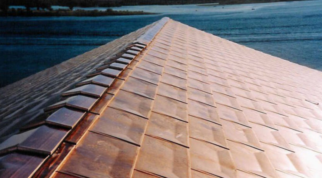 Copper shingles offer a unique, high-end appearance that changes over time as they develop a natural patina.