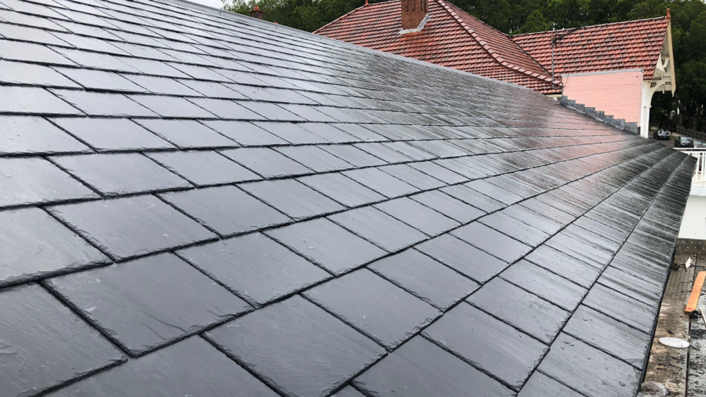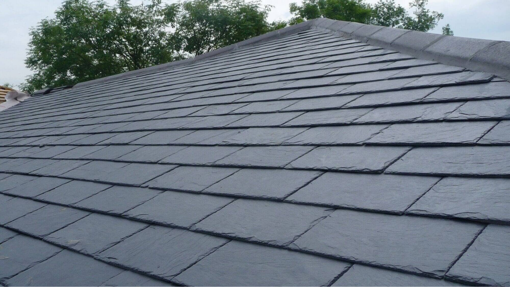Synthetic slate shingles mimic the appearance of natural slate but are much lighter and more affordable.