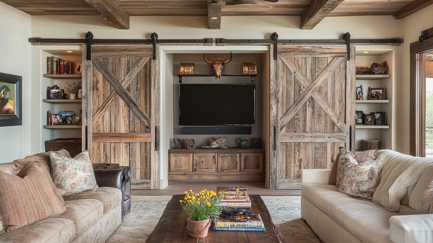 Sliding barn doors add both style and function to western living rooms while saving space compared to regular doors. These distinctive features bring farm charm indoors.