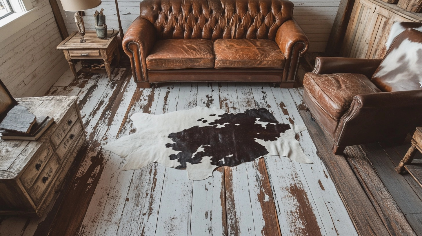 2. Cowhide Rugs and Rustic Wood Floors