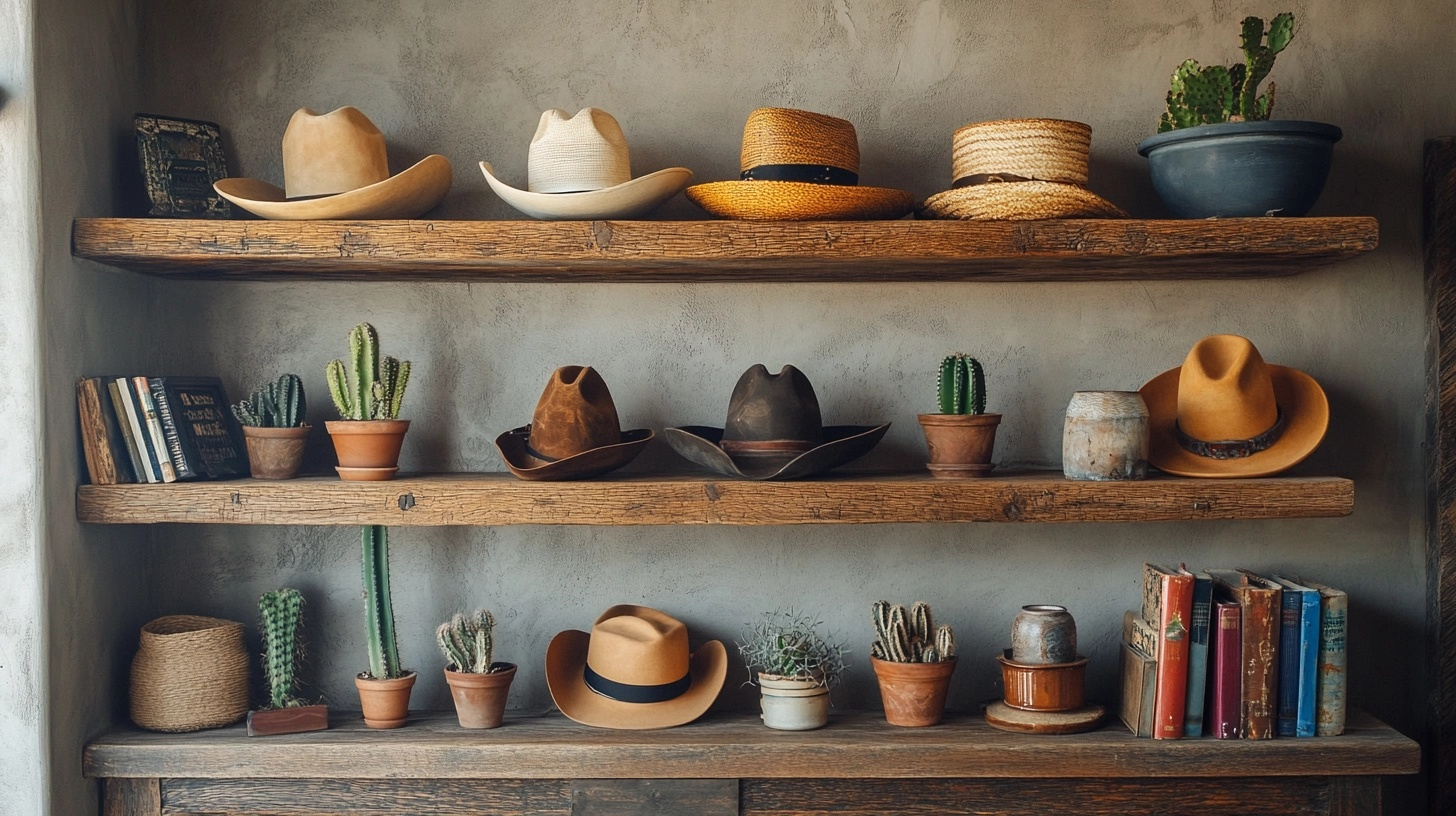 Fill them with items that tell your western story – maybe old boots, small cactus plants, cowboy hats, or vintage western books. The key is not to overcrowd the shelves, leaving room for each item to be seen and enjoyed.