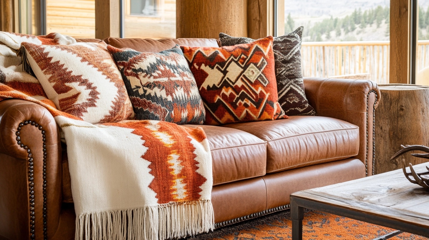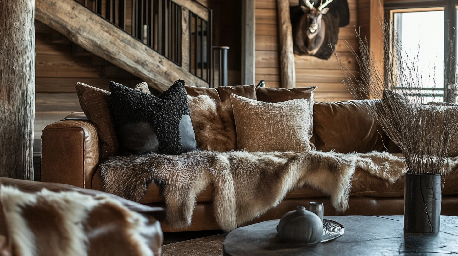 Fur pillows soften the look of leather furniture while adding another layer of texture. These items bring a hint of mountain lodge style to your western living room, perfect for creating spaces that feel both rugged and comfortable.